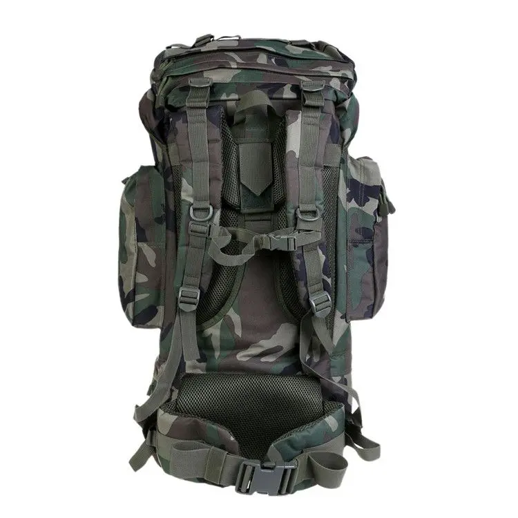 This heavy-duty tactical field backpack is designed for extended missions and outdoor adventures, featuring multiple compartments, side pouches, and a built-in rain cover to keep gear secure and dry. Its padded mesh back panel and adjustable waist strap ensure comfortable carrying, even with heavy loads, while available camo and solid-color options suit tactical and outdoor needs alike.
