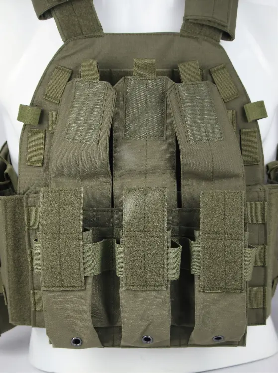 Este chaleco militar táctico cuenta con cinchas MOLLE para personalizar el equipo, hombreras desmontables para mayor comodidad y tres bolsillos para el cargador con orificios de drenaje para estar preparado para climas húmedos. Con correas ajustables, bolsillos integrados y construcción duradera, está diseñado para airsoft, entrenamiento táctico o simulaciones militares, ofreciendo almacenamiento organizado, un ajuste seguro y transpirabilidad.