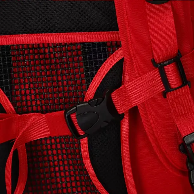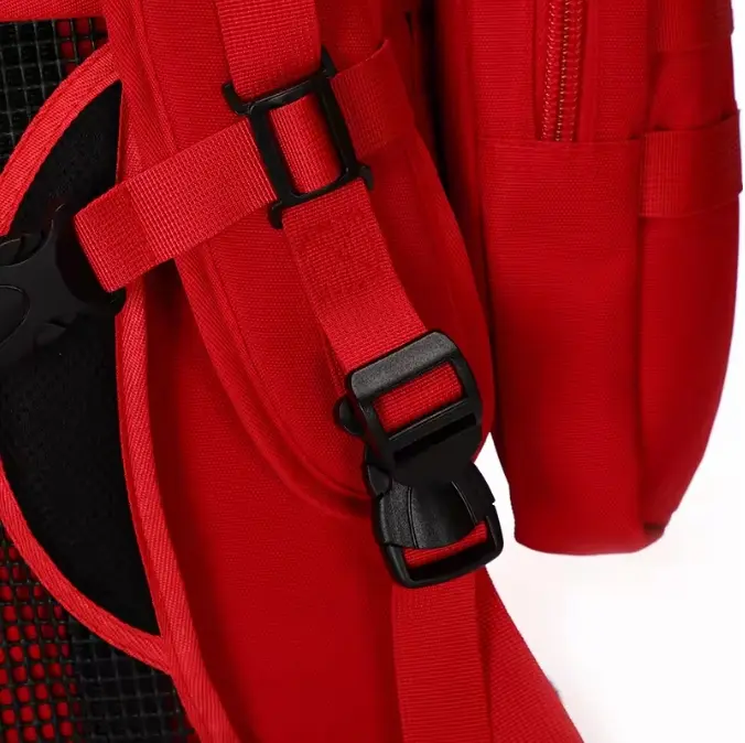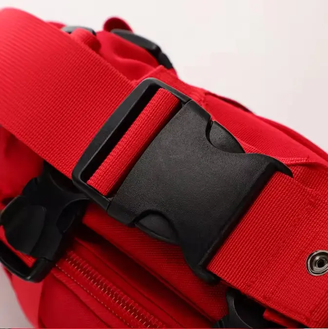 Tämä punainen taktinen reppu on tarkoitettu lääketieteelliseen käyttöön sotilas- tai ulkoalueilla. Siinä on valkoinen ristilappu helppoa tunnistamista varten ja MOLLE-verkko pussien lisäämistä varten. Repussa on irrotettavat sivutaskut ja vyötärölaukku, jotta tarvikkeisiin pääsee nopeasti käsiksi. Siinä on säädettävät hihnat ja soljet mukavuuden takaamiseksi kantamisen aikana.