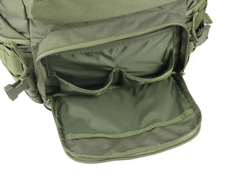 Ce sac à dos tactique vert olive avec rabat est conçu pour un rangement organisé et un accès facile lors d'activités tactiques, militaires ou de plein air.