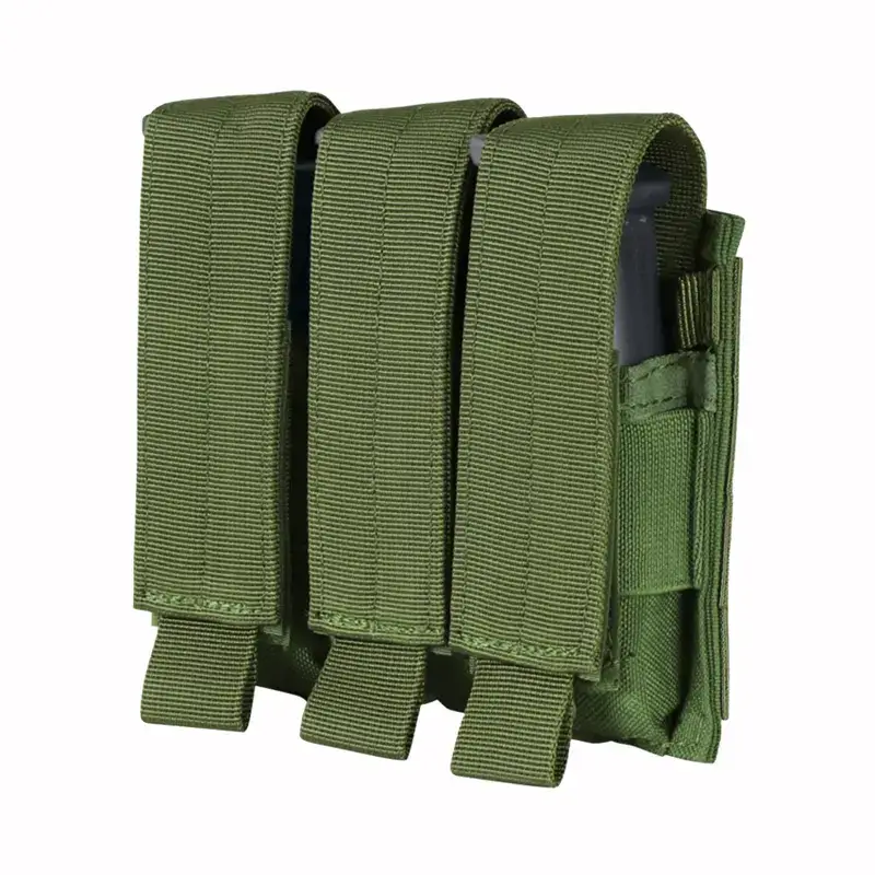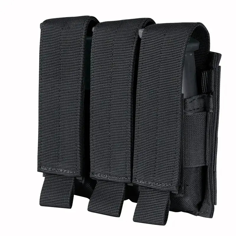 Cette pochette tactique MOLLE pour triple chargeur de pistolet est conçue pour organiser et transporter des chargeurs de pistolet. Elle s'adapte à la plupart des chargeurs de pistolet, est dotée d'un rabat réglable à bande auto-agrippante (qui peut se convertir en ouverture) et se fixe à l'équipement MOLLE, idéal pour les gilets tactiques, les ceintures ou les sacs à dos.