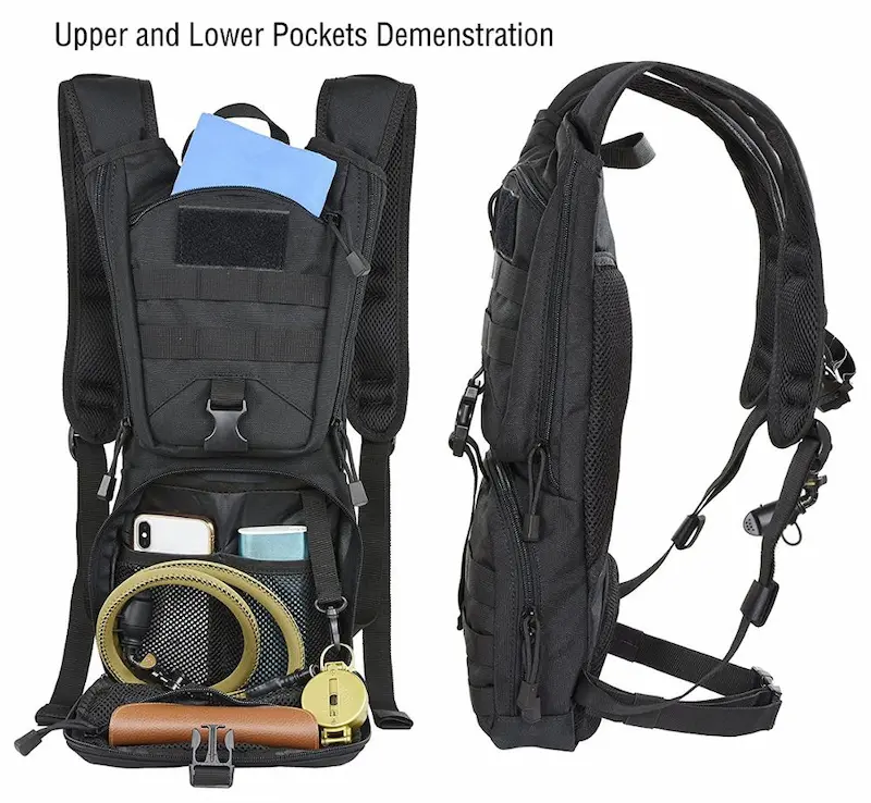 - 2.5L Water Bladder Included: Leak-proof, hands-free hydration with a bite valve.