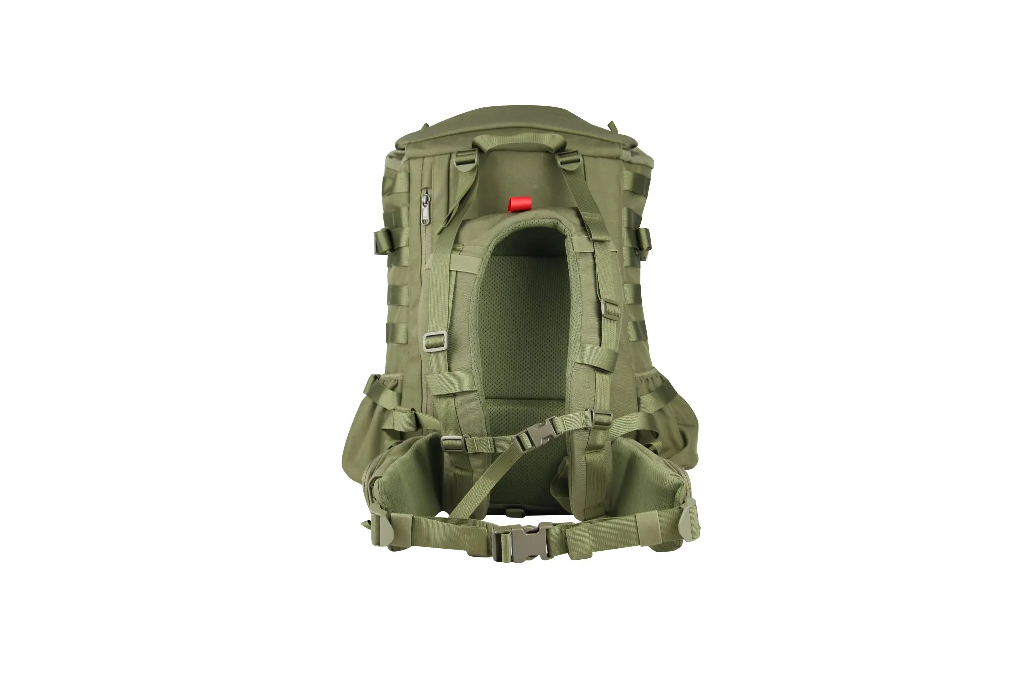 Ten oliwkowozielony plecak taktyczny z pokrowcem przeciwdeszczowym jest przeznaczony do operacji wojskowych, pieszych lub taktycznych, zapewniając dużo miejsca do przechowywania, trwałość i ochronę przed warunkami atmosferycznymi.