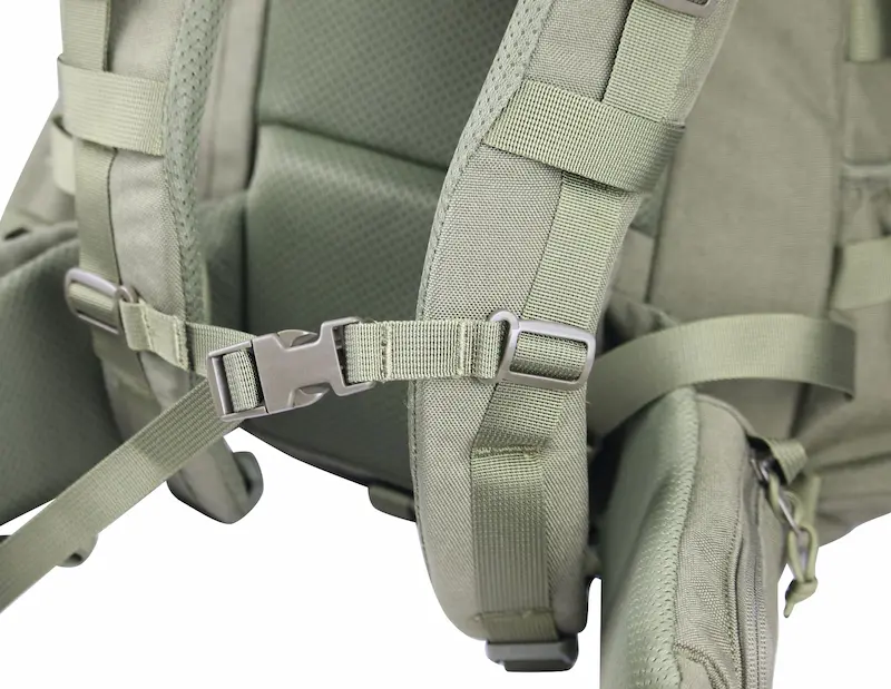 - System taśm MOLLE: Przednie i boczne paski MOLLE umożliwiają przymocowanie ładownic, kabur lub dodatkowego sprzętu w celu uzyskania modułowej konfiguracji.