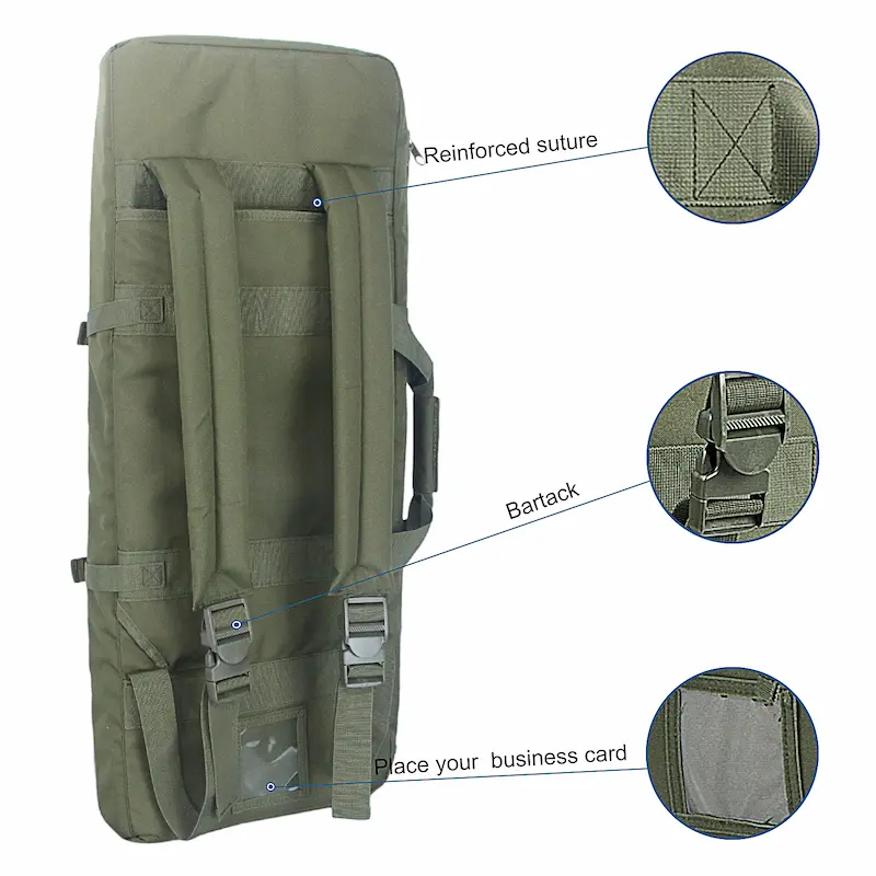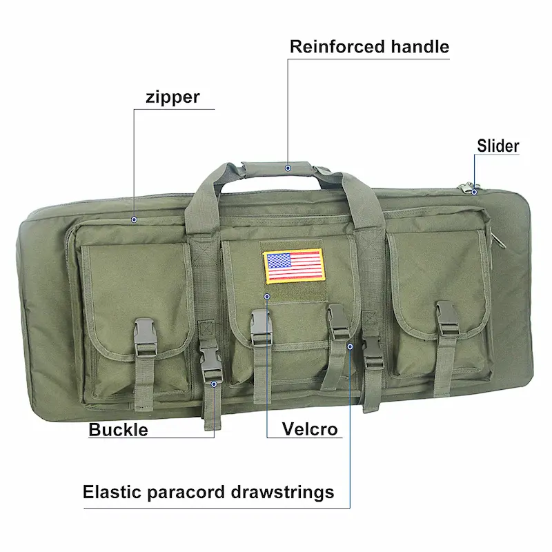 This 32″ tactical rifle case is made for secure transport of long gear (rifles, tools) and accessories. It has multiple front pockets with buckle closures for organized storage, a padded interior with a divider to protect items, and dual carry options (handles + backpack straps). Built with heavy-duty zippers and reinforced stitching, it’s ideal for shooting sports, hunting, or tactical use.