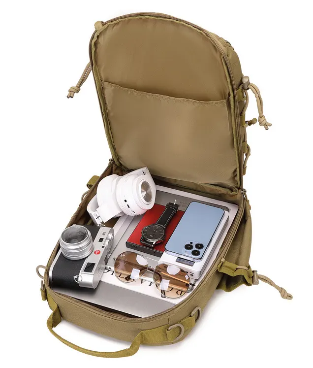 This tactical backpack is designed for versatility and organization, perfect for outdoor activities, commuting, or travel. It can be used as a dual-shoulder or single-shoulder bag, with multiple pockets and functional details to keep your gear in order.