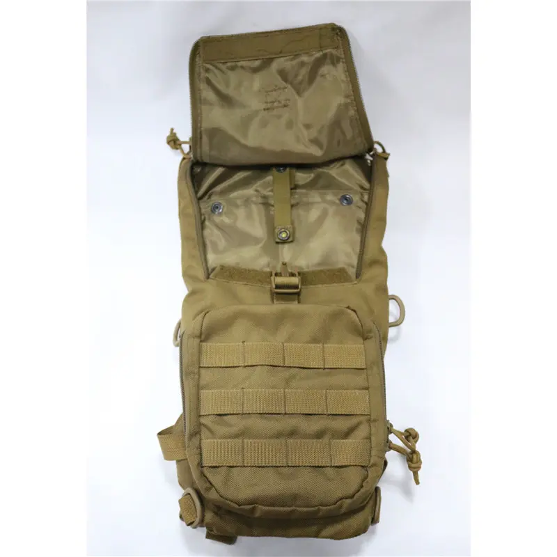 This tactical hydration pack is designed for outdoor activities like hiking, cycling, and running. It comes with a 2.5L BPA-free water bladder, multiple storage pockets for gear, and MOLLE webbing for attaching accessories. Made from water-resistant 600D polyester, it keeps you hydrated and organized while withstanding outdoor conditions.