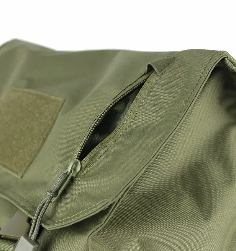 This tactical daypack in olive green offers organized storage for daily or field use. It has a main compartment with a laptop sleeve and multiple pockets for gear. MOLLE webbing allows attachments, and adjustable straps provide a secure fit. The mesh back panel helps with airflow during carry. Contact us for custom orders or wholesale pricing.
