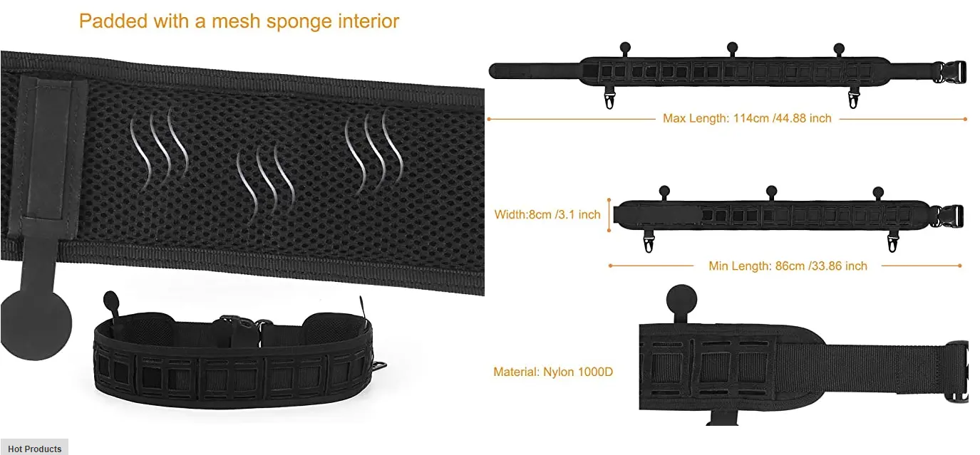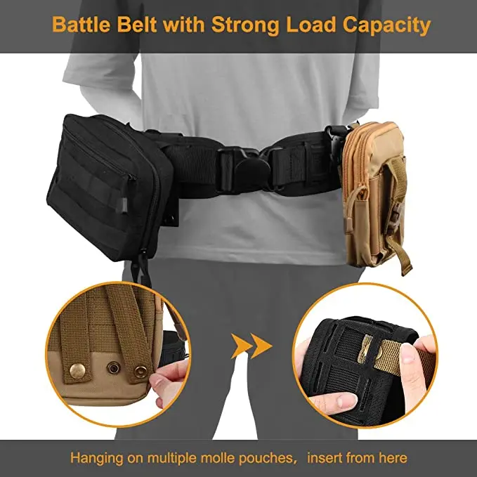 Este cinto de batalha tático é fabricado em nylon 1000D para uma durabilidade robusta, concebido para transportar e organizar equipamento tático. Ajusta-se de 86 cm a 114 cm para se adaptar a vários tamanhos de cintura, possui um interior em malha almofadada para maior conforto e é compatível com MOLLE para fixar bolsas, coldres ou ferramentas. Ideal para airsoft, operações tácticas ou actividades ao ar livre que exijam um armazenamento seguro do equipamento na cintura.