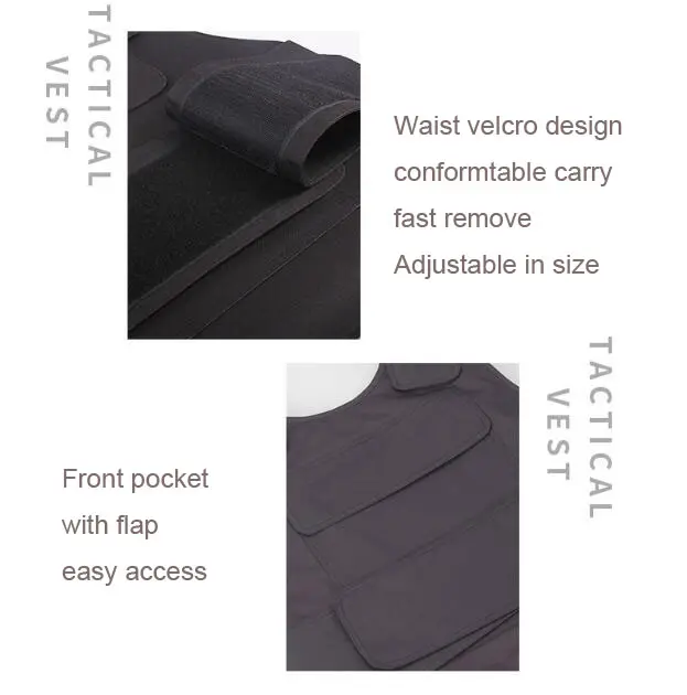 Este colete preto à prova de facadas é fabricado em nylon 600D impermeável e inclui uma inserção amovível em aço de alto manganês #65 para proteção contra facadas. Concebido para guardas de segurança, agentes da autoridade, condutores e proteção pessoal, oferece uma área de proteção de 0,3 metros quadrados, pesa 2,3 kg e inclui tiras de velcro ajustáveis para um ajuste seguro.