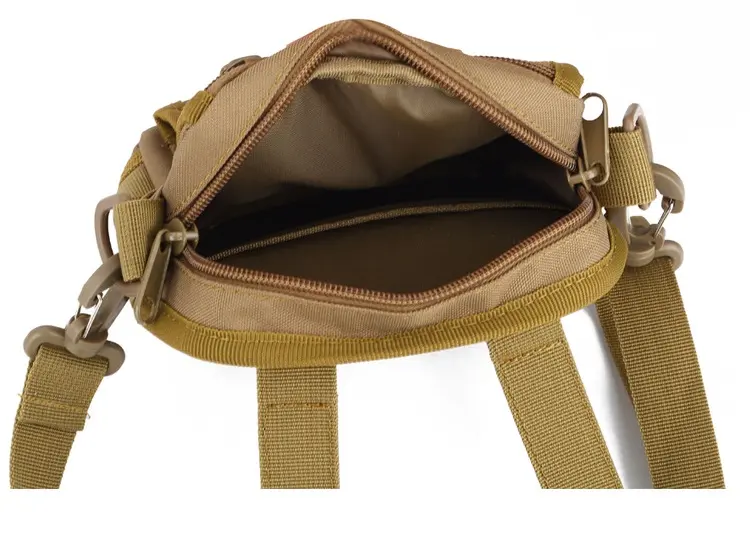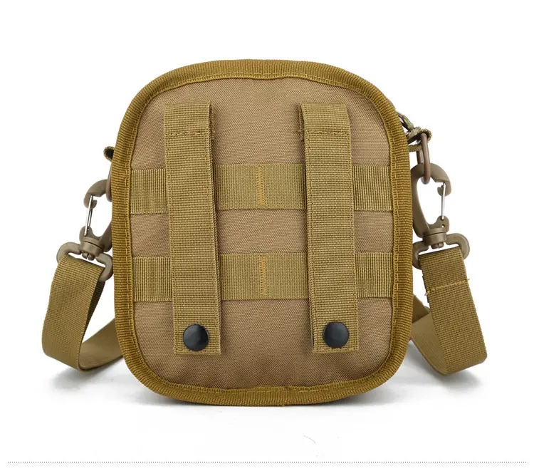This compact tactical crossbody bag features a detachable and adjustable shoulder strap for comfortable carry. Built for everyday carry (EDC), it holds small essentials like phones, keys, and wallets, with a snap closure and multiple compartments. Ideal for tactical use, outdoor trips, or daily commutes.