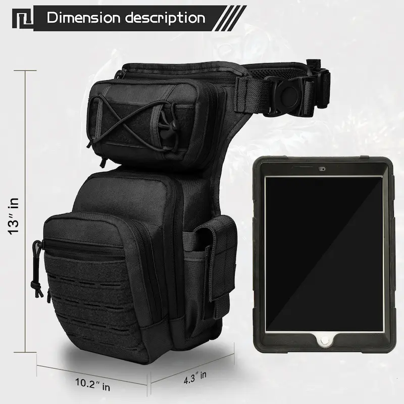 Crafted from 1000D nylon for rugged durability, this tactical leg bag features multiple compartments to organize gear like tools, electronics, or tactical essentials. With adjustable thigh straps, it secures comfortably for hands-free access during outdoor activities, airsoft, or tactical missions.