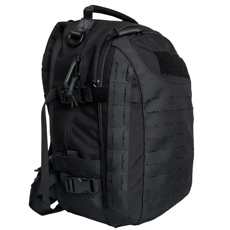 This rugged tactical assault pack features a modern laser-cut MOLLE system for modular attachments, a spacious main compartment, and ergonomic padded shoulder straps for all-day comfort. The durable water-resistant construction and multiple color options make it ideal for military, law enforcement, and outdoor professionals who need reliable gear carry.
