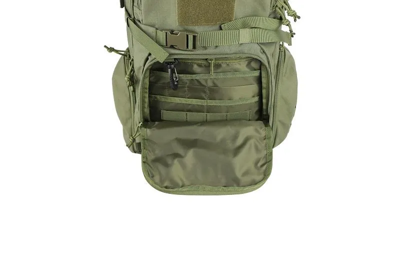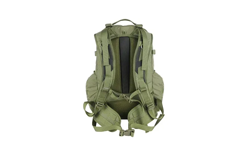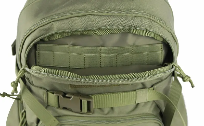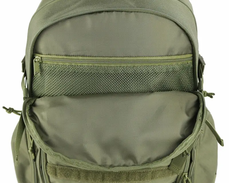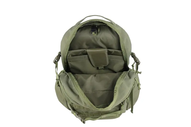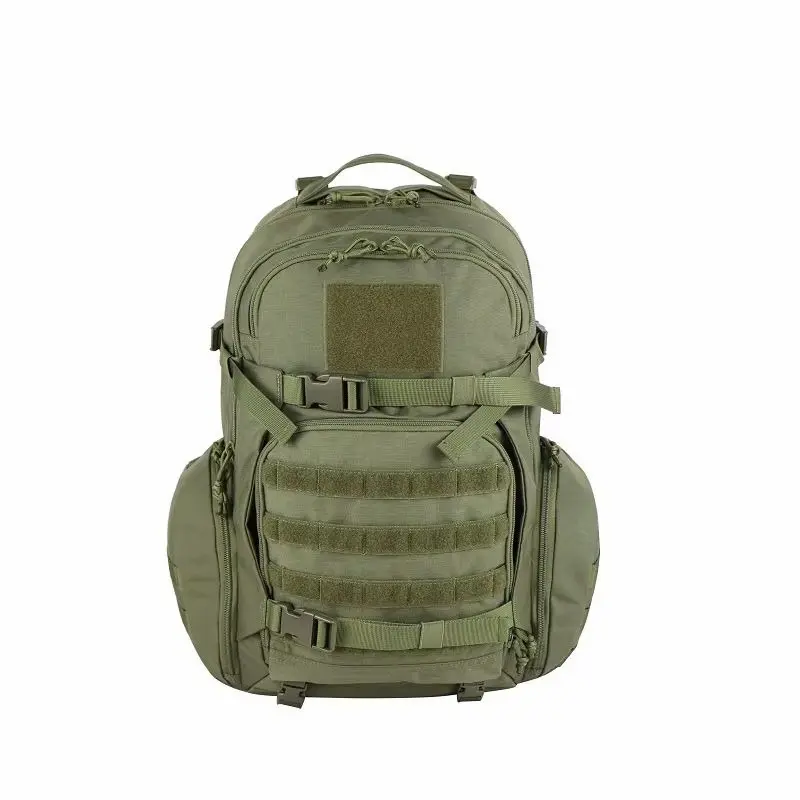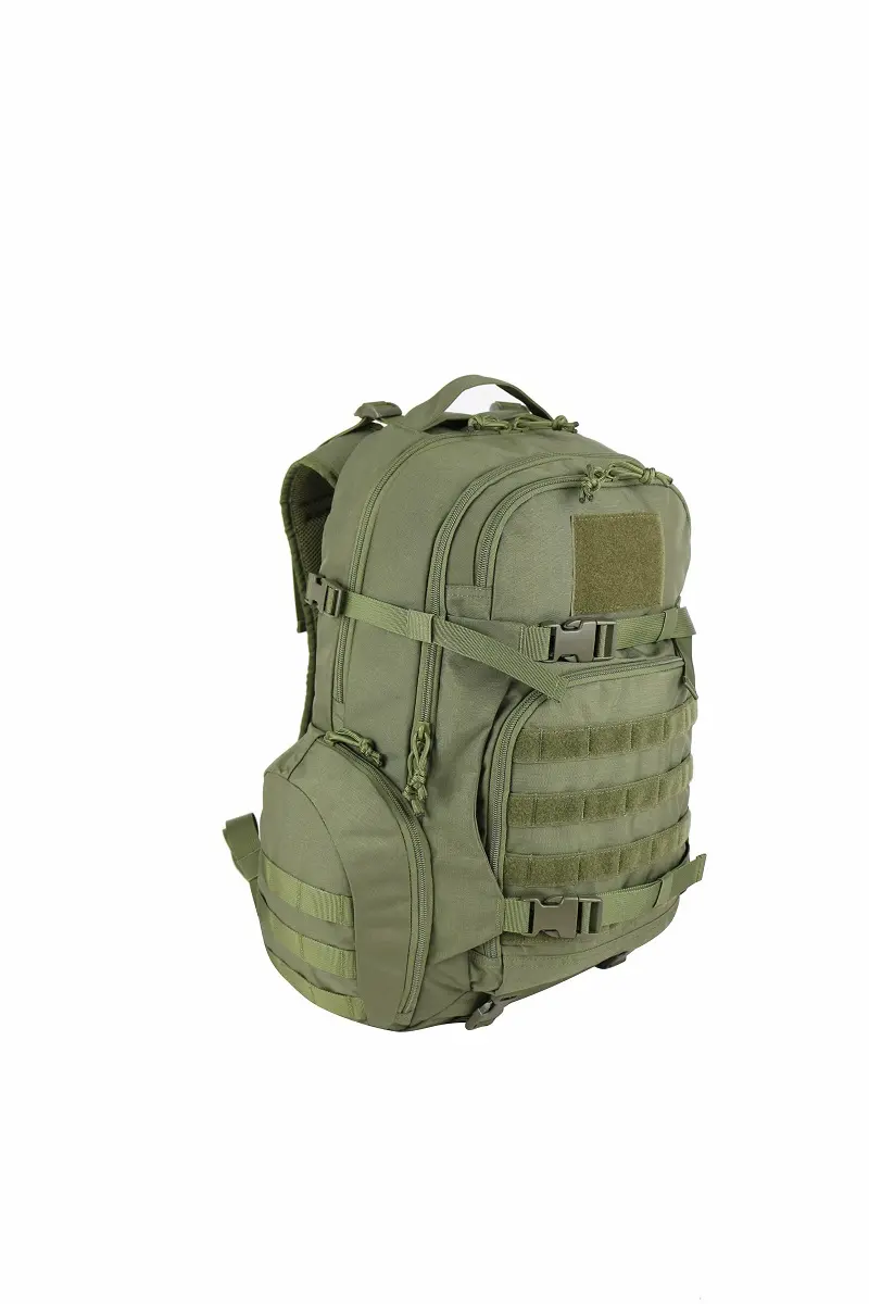 Этот рюкзак изготовлен на заказ для использования в военных целях, на природе и в тактических целях. Рюкзак выполнен из прочного нейлона оливково-зеленого цвета и оснащен широкой сеткой MOLLE для крепления подсумков и снаряжения. В рюкзаке есть основное отделение с полностью закрывающимся клапаном для легкого доступа, несколько карманов на молнии для организации. Внутренняя прокладка совместима с гидратационным баллоном. Подходит для однодневных и коротких походов.