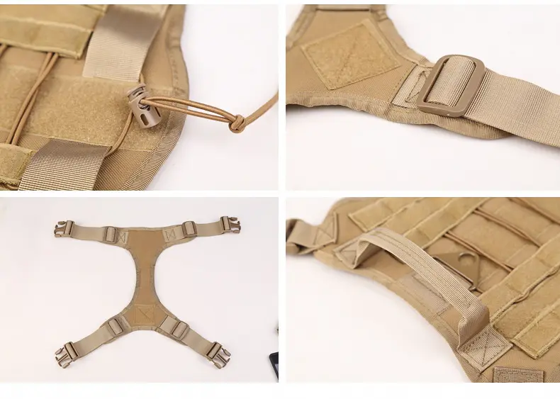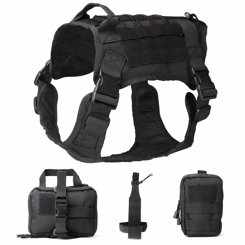 Táto taktická vesta K9 je vybavená popruhovým systémom MOLLE na pripevnenie modulárnych vreciek, takže je ideálna pre služobné psy, výcvik K9 alebo outdoorové aktivity. Obsahuje príslušenstvo, ako sú úložné vrecká a držiak na fľašu s vodou, vďaka čomu si môžete prispôsobiť úložný priestor na výstroj svojho psa. Hodí sa na rôzne veľkosti psov a aktivity.